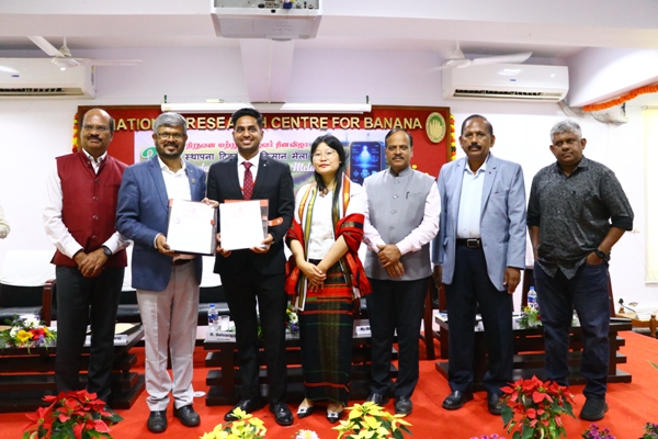 Besides, special focus was given to value addition of banana. Hands-on sessions on the preparation of banana-based processed products, including low-fat banana chips, banana fig, and pickles from banana flower and stem, as a part of transfer of technology. MoUs were signed between ICAR-NRCB and Wokha District Administration, Nagaland for one technology and three value-added products viz., Kaveri Microbial Consortium, Low fat fortified & flavoured chips, Dehydrated / fortified / flavoured ripe banana fig and Low sodium banana based pickles (flower, central core stem and peel).