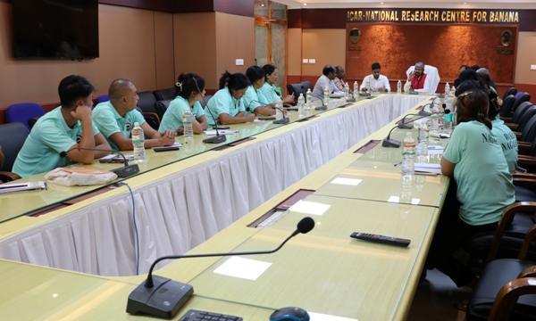 Inaugurating the training, Dr. R. Selvarajan, Director of ICAR–NRCB, highlighted the immense potential of banana as both a fresh fruit and a processed commodity. He stressed the need for farmers to adopt proven scientific innovations in cultivation and post-harvest management to ensure higher yields, reduced post-harvest losses, and new livelihood opportunities through value-added products. He also appreciated the enthusiasm of farmers from Nagaland for coming forward to adopt NRCB’s technologies.