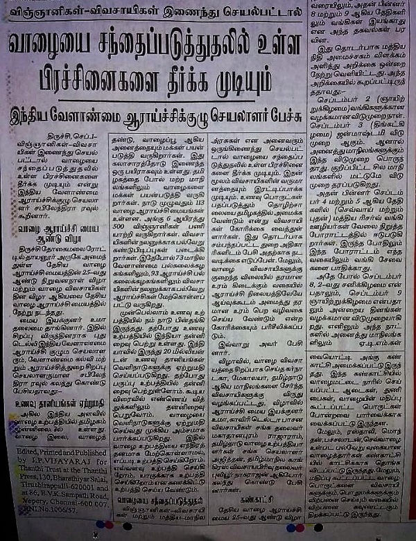 NEWS - ICAR-NRCB celebrated its Silver Jubilee year of Foundation Day as Kissan Mela on 31-9-2018