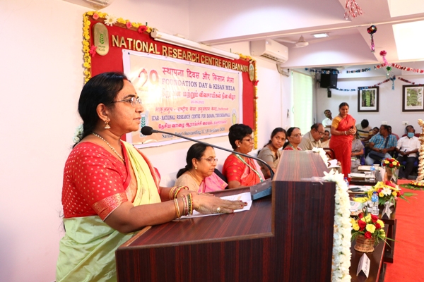 Dr. S. Uma, Director NRCB, in her presidential address mentioned the achievements of ICAR-NRCB during the last year. The present foundation & farmers’ day celebration was planned to hold the dialogue between different stakeholders in the banana production system viz., administrators, researchers, entrepreneurs, farmers, and extensionists to frame the modalities for the policy development for banana promotion and development.