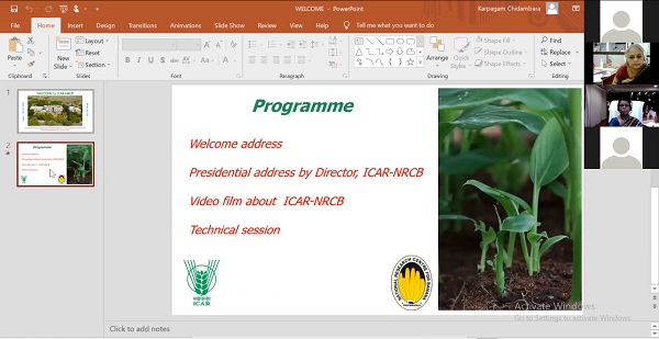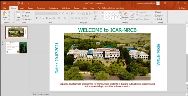 ICAR – National Research Centre for Banana, Tiruchirappalli, Tamil Nadu organised a one-day online students HRD programme on “Capacity development programme in banana cultivation & academic and entrepreneurial opportunities in banana sector for Horticultural students of Karnataka state” on 20.07.2021. Dr. S. Uma, Director, ICAR-NRCB, Tiruchirappalli highlighted the importance of banana cultivation and the opportunities available for the agricultural and horticultural students in banana sector. Furter, she emphasised the academic avenues available for the students in banana Research & Development. Earlier, in his welcome address Dr. C. Karpagam, Senior Scientist briefed the objective of the one-day programme. A video film about ICAR-NRCB was screened. Two dimensions of banana R & D were discussed in the technical session. Dr. S. Backiyarani, Principal Scientist highlighted the banana improvement aspects with details about new varieties and other improvement technologies. In the second part, Dr. P. Sureshkumar, Principal Scientist discussed about the various post-harvest technologies and products developed by ICAR-NRCB. Seventy final year horticultural students and five faculties from College of Horticulture, Hiriyar, UAHS, Shivamogga, Karnataka were participated as per their all-India education virtual study tour programme schedule. This was organised as a part of the “Bharat Ka Amrut Mahotsav” to commemorate 75th Year of India’s Independence.