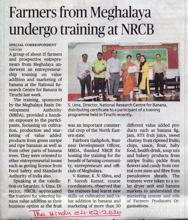 NEWS - ICAR-NRCB conducted training programme for meghalaya farmers