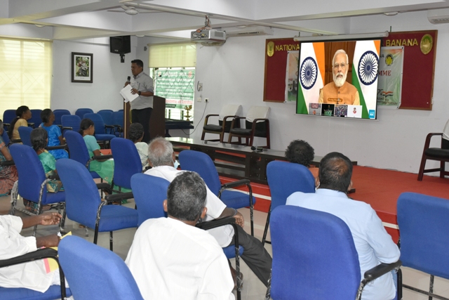 ICAR – National Research Centre for Banana, Tiruchirappalli, Tamil Nadu organised a farmers meet for a programme on “Natural Farming” in the forenoon of 16.12.2021. During this online programme, Honourable Prime minister addressed the farmers, students, scientists and other stakeholders on the topic “Natural Farming”. The programme had been live streamed at conference hall in ICAR- NRCB. Around 100farmers from Villupuram and Kanyakumari districts, 50 students and 50 staffs and other stakeholders were participated in the programme. Before and after the programme, the technical sessions have also been organised.