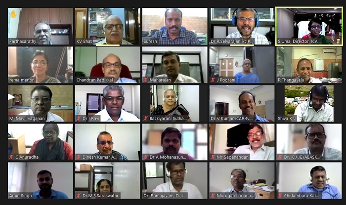 The 22nd RAC meeting of the ICAR-NRC for Banana was held in virtual mode on 23-24 July 2021. The meeting was attended by Dr. V.A.Parthasarathy, Chairman, Dr. KV. Bhat, Member, Dr. Rema Menon, Member, Dr.P.Chandran, Member, Dr. S.C.Dubey, Member, Dr.BK.Pandey, ADG(HS), Dr.S.Uma, Member, Shri.B.Maharajan, Member (IMC Rep.), Shri K.Sadanandan, Member (IMC Rep.), Dr.R.Selvarajan, Member Secretary and all the Scientists of NRCB. Dr. S. Uma, Director, welcomed the RAC members and presented a brief report of the research and outreach activities of NRCB since the last RAC. Dr R. Selvarajan, Member-Secretary, presented the report on the action taken on the recommendations of the last RAC meet. Salient research achievements were presented by the scientists. All the members gave their remarks and comments at the end of each presentation. The chairman, in his final concluding remarks listed out the recommendations and advisories that came out of the presentations, discussions during the break out session of each section. The meeting ended with a vote of thanks by Dr. R.Selvarajan.