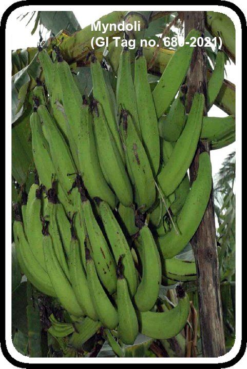 • It is cultivated in Pernem, Bardez and Bicholim taluks of Northern Goa along the banks of the river tributaries of Chapora and Mapusa. • Crop duration: 13-14 months. • Bunch weight: 17-20 Kg. • The fruits are long, dark yellow with medium thick skin, and sinfully sweet and usually steamed, roasted and lightly fried in ghee for consumption. • Myndoli Kelya Chi Halwa is a choice delicacy prepared from the fruits.
