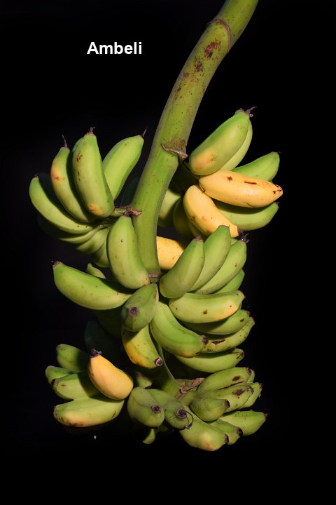60 Dessert banana. Used in Siddha medicine. Nutritional banana with good carotenoid content. Immune to leaf spot disease.