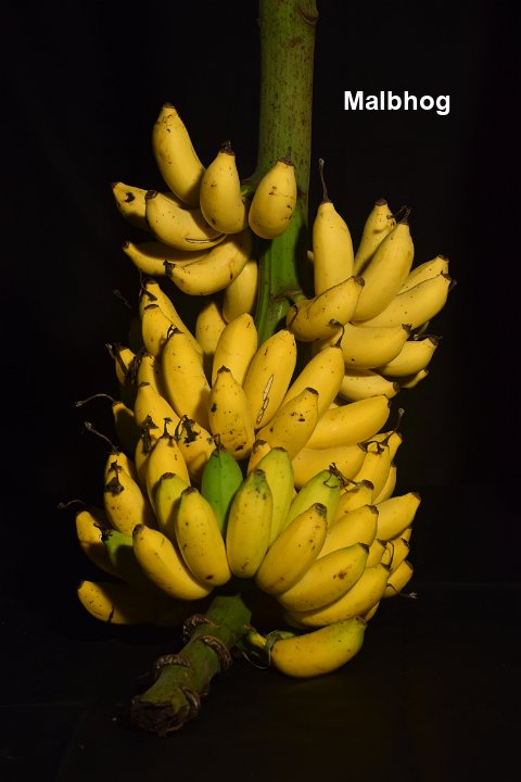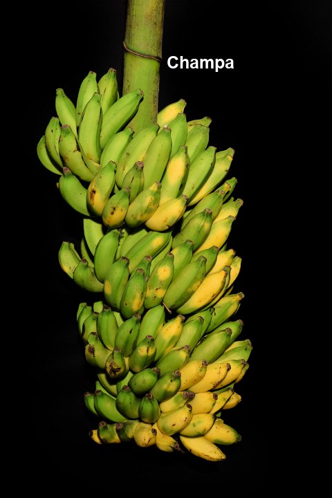 40 Dessert banana, Pome type. Grows in plains. Fruits are long, slightly acidic in taste.