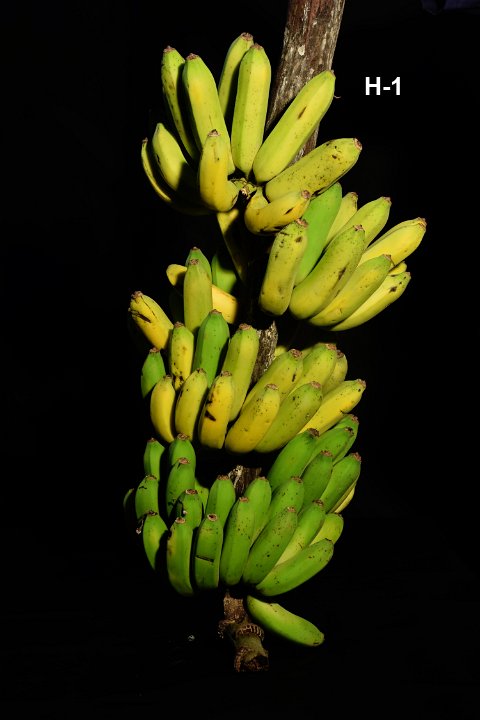 46 Dessert banana. Popular cultivar grown throughout India. Fruits are acidic sweet in taste with firm flesh.