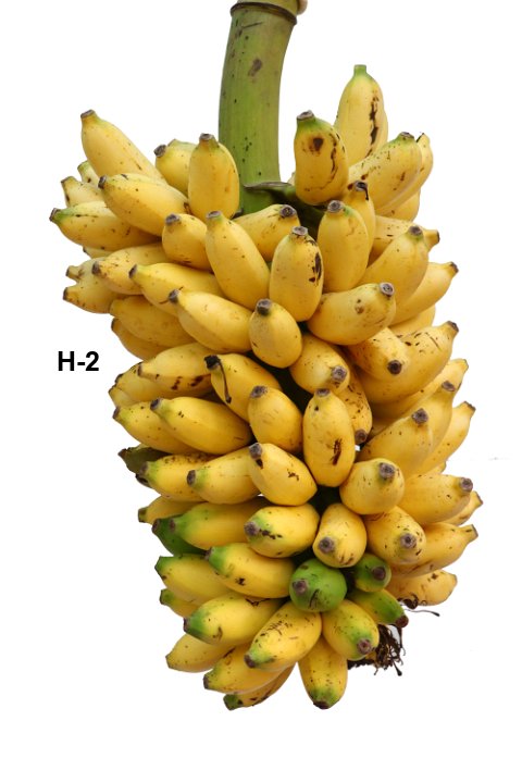 23 Dessert banana. Belongs to Plantain subgroup. Medium tall plant. Highly resistant to Foc race 1.