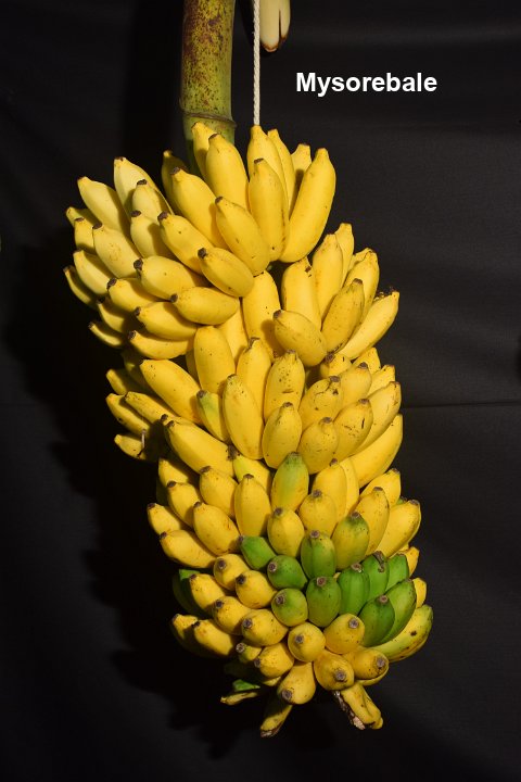 42 Dessert banana. It belongs to Mysore subgroup. It is a tall, robust cultivar with conical bunch grown in Kerala.