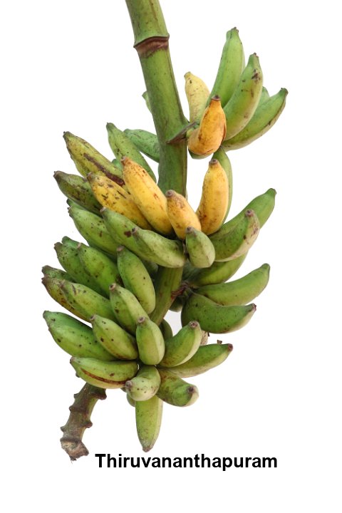 31 Dessert banana. Cultivated in Southern states of India, especially Kerala. Fruits are of religious importance, specially offered in temples. Immune to Fusarium wilt race 1.