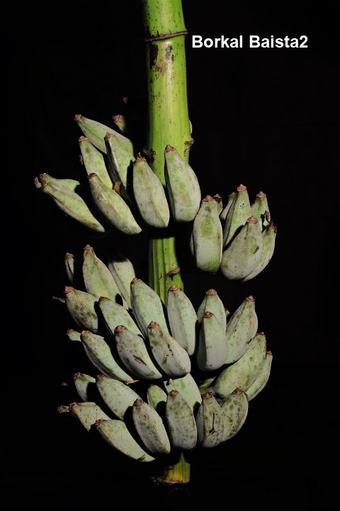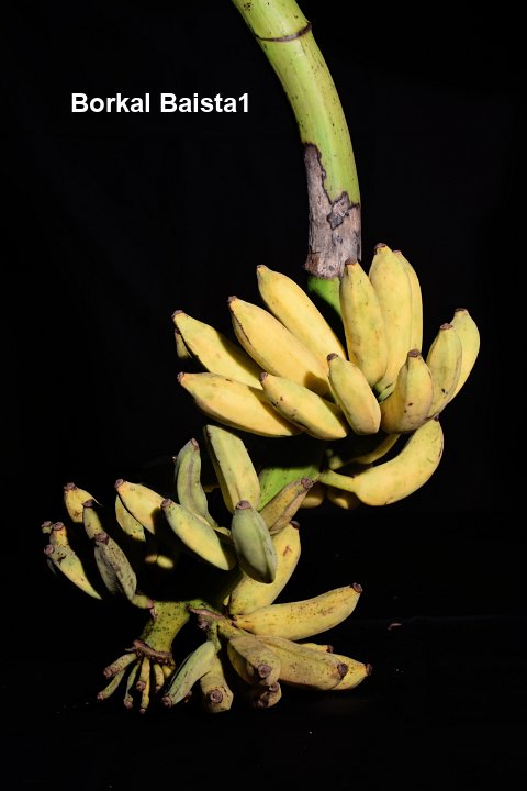 7 Tall plants with bunches having 10-12 hands. Fruits are ash coated and the pulp is tasty with little acidity.