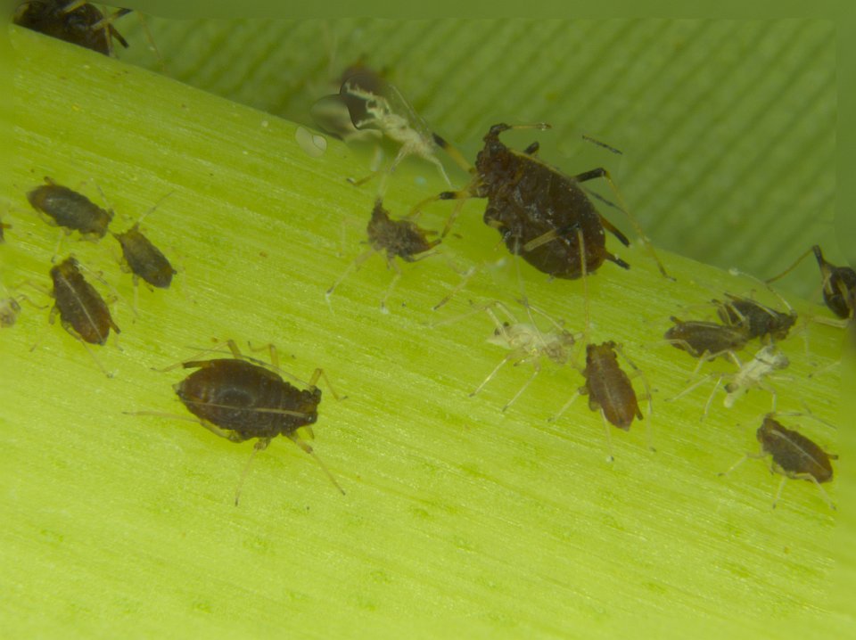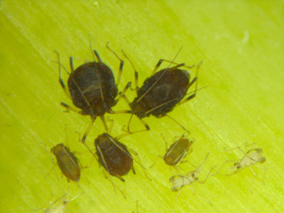 31 Larvae of Scymnus nubilus feeding on banana aphids |
