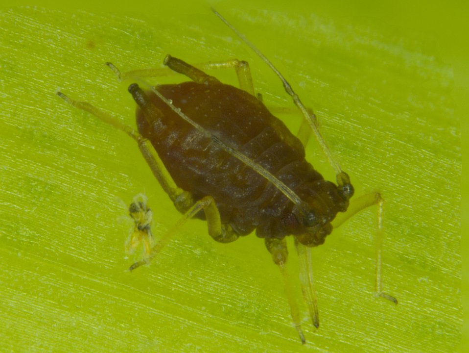 32 Larva of Scymnus nubilus in banana aphid colony |