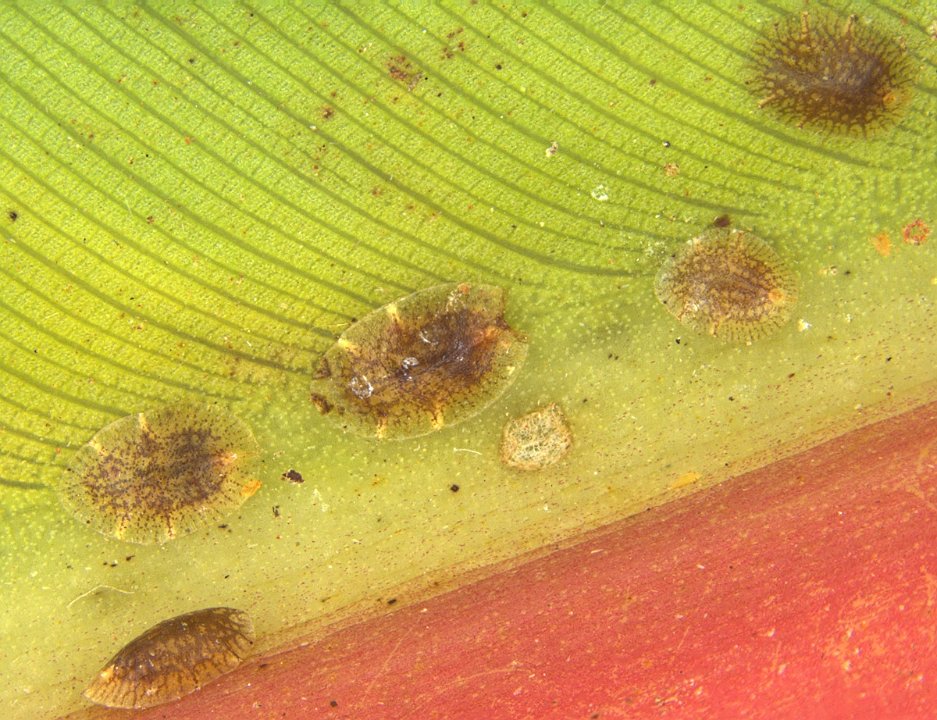 Brown soft scale, Coccus hesperidum, is commonly found on banana foliage, but in very few numbers and does not cause economic damage
