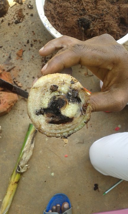 7 Corm damage due to tunnelling by corm weevil