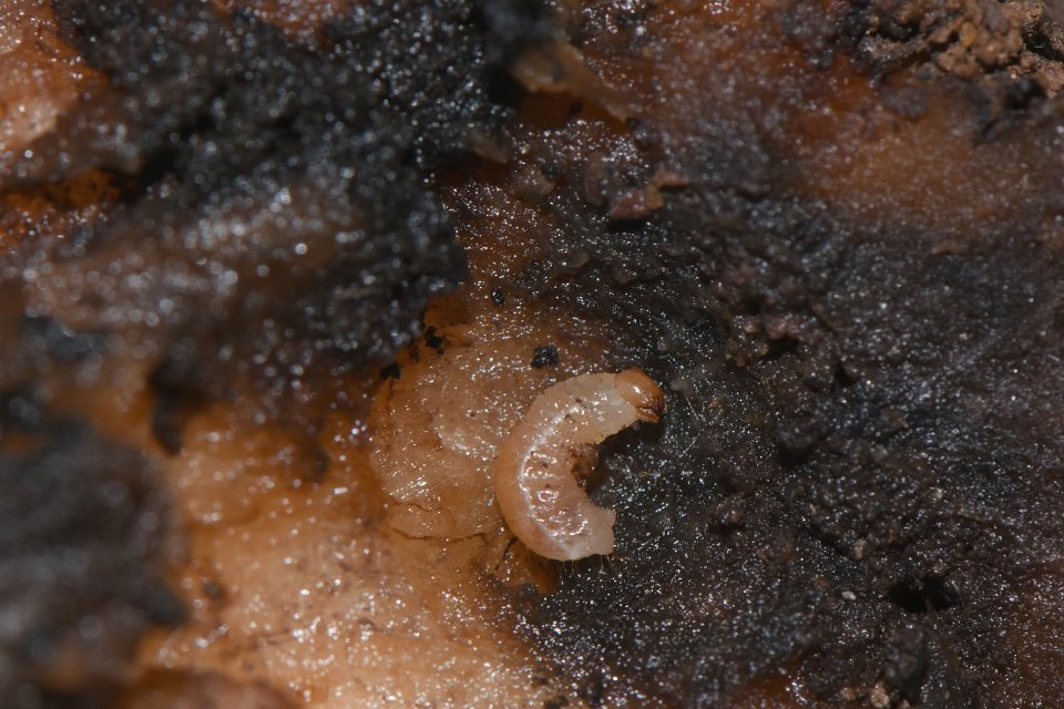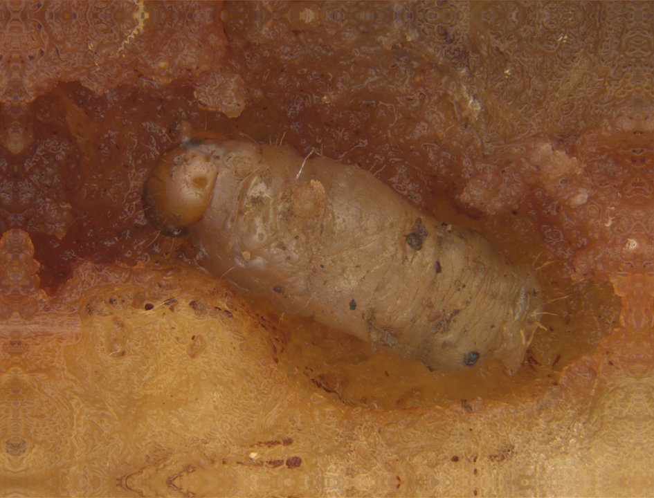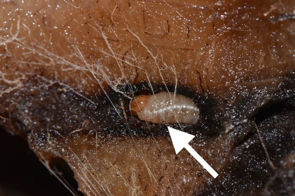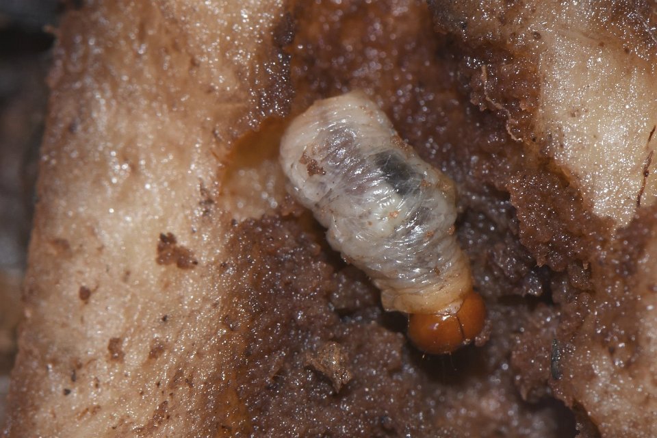 29 Larva tunnelling into rhizome