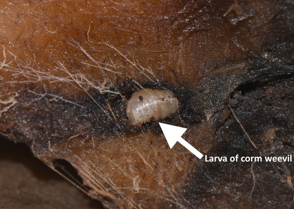 1 Corm damaged by weevil