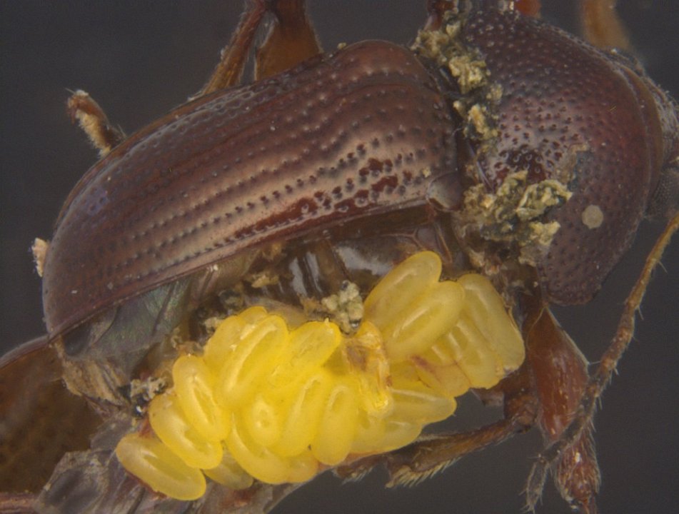 Fruit and leaf scarring beetles (Basilepta spp.) are major pests in north and northeastern India and Bangladesh and affect the cosmetic appearance and market value of fruits.