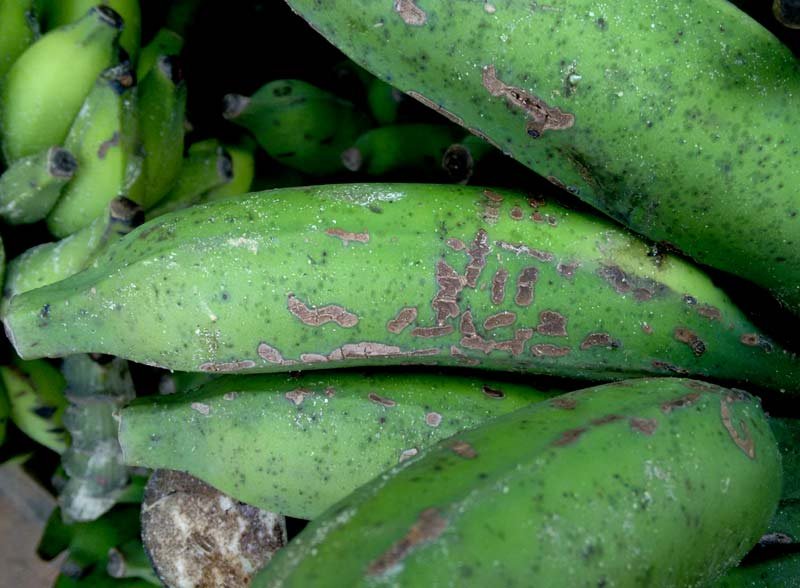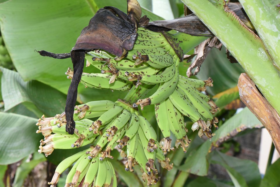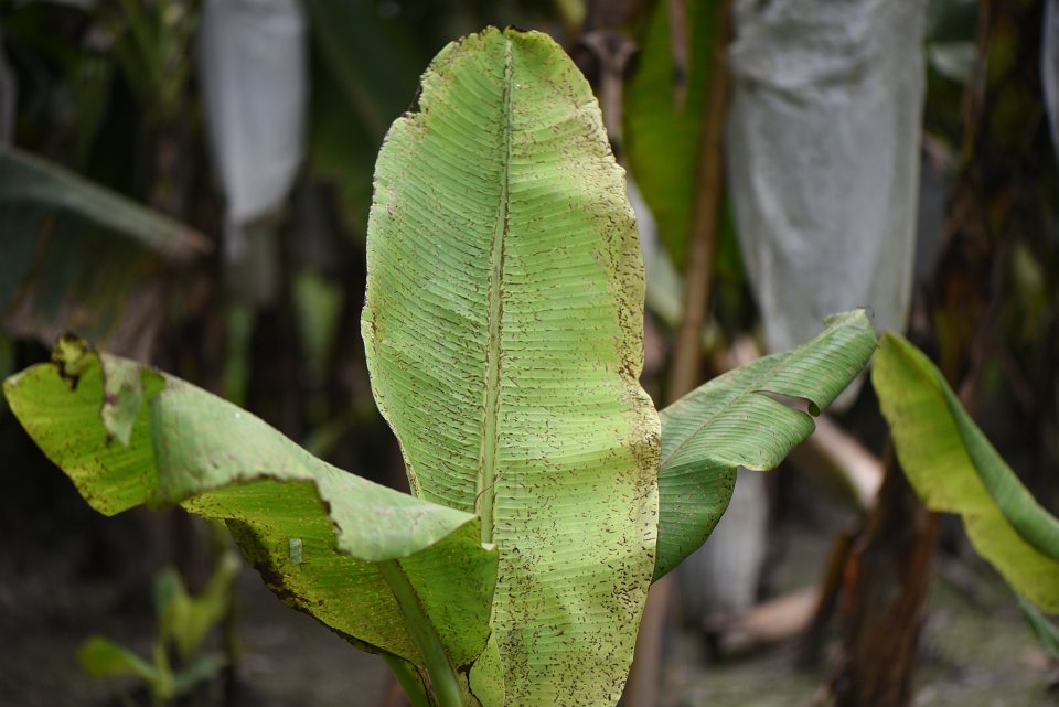 Banana bunch covered with sleeve as a preventive measure against scarring beetles