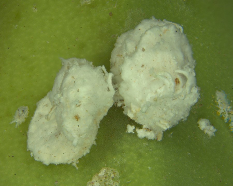 Colony of Rastrococcus iceryoides on banana fruit
