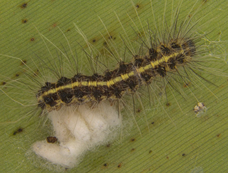 1 Early stage larvae on banana causing skeletonization of leaf |