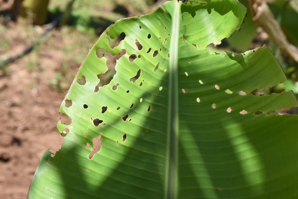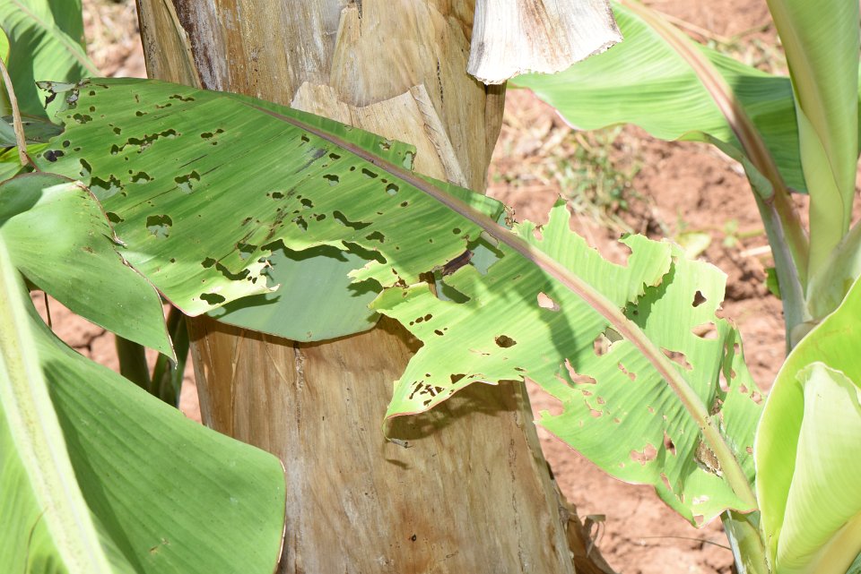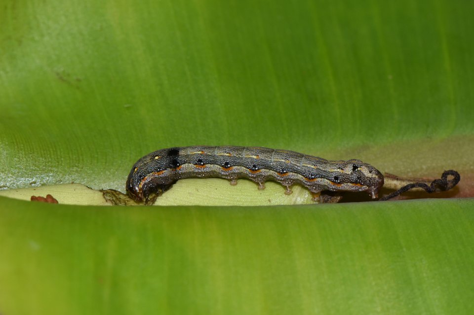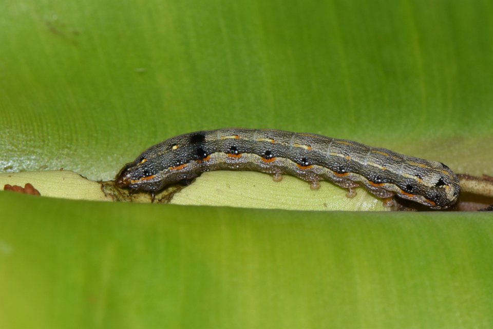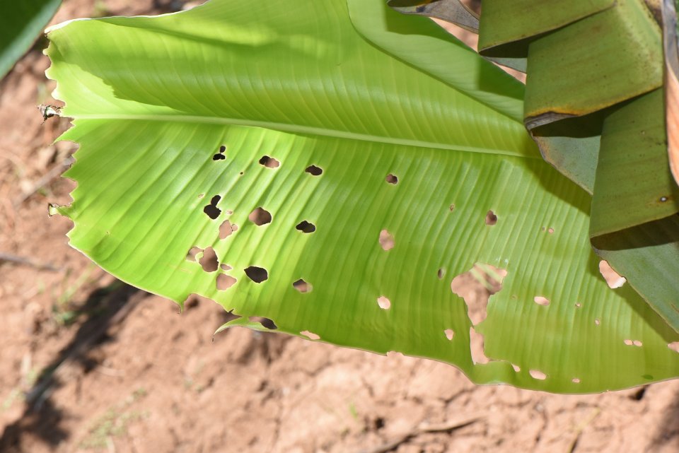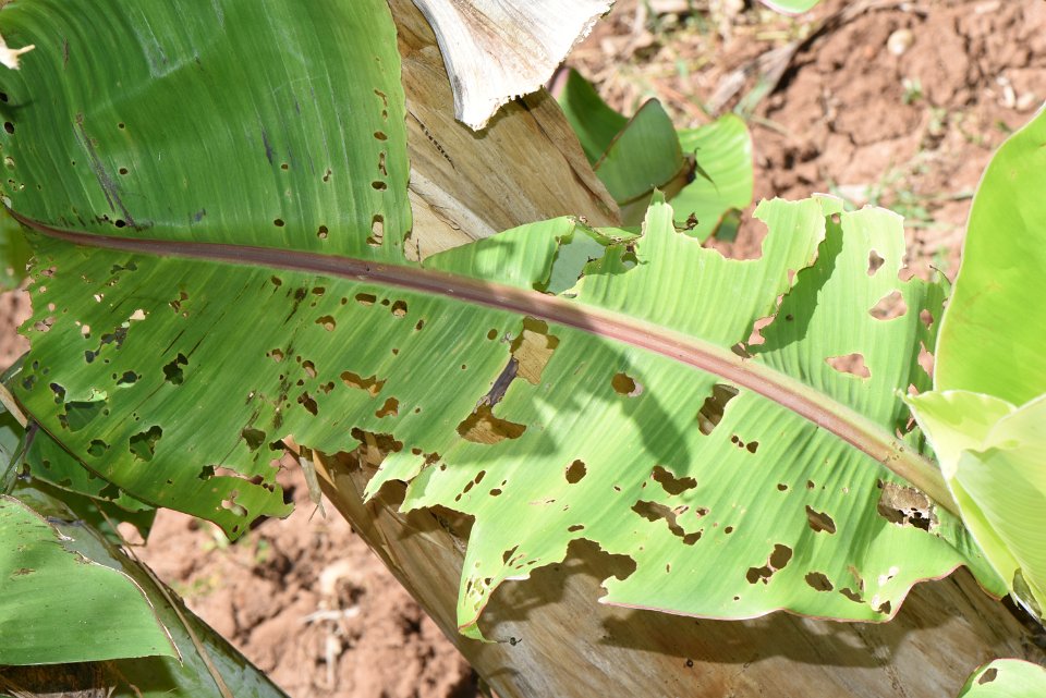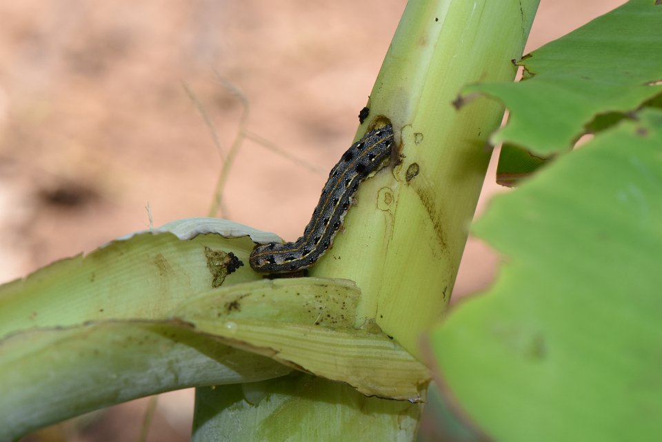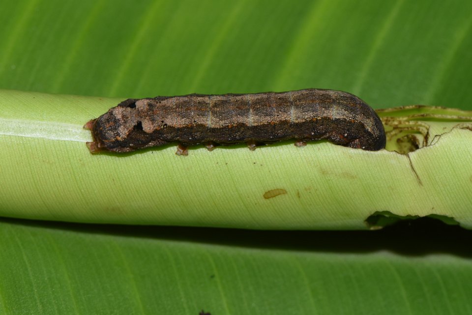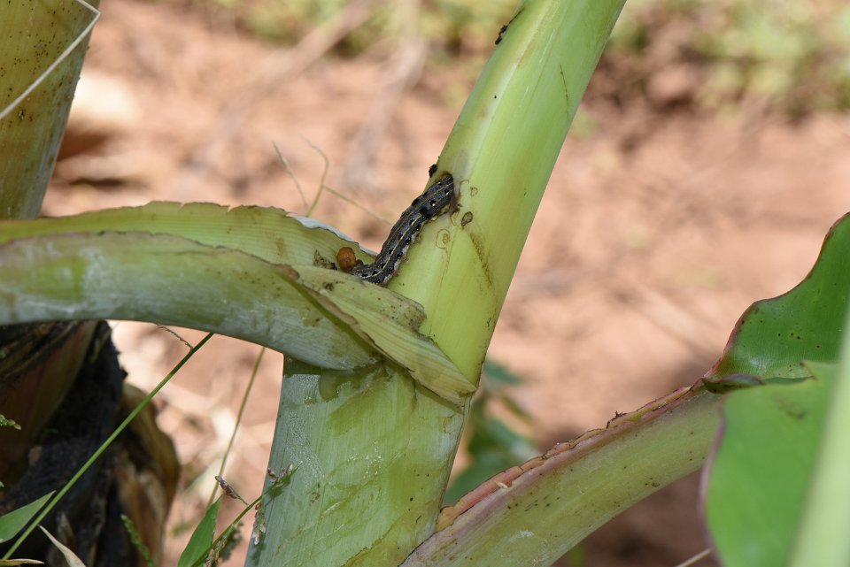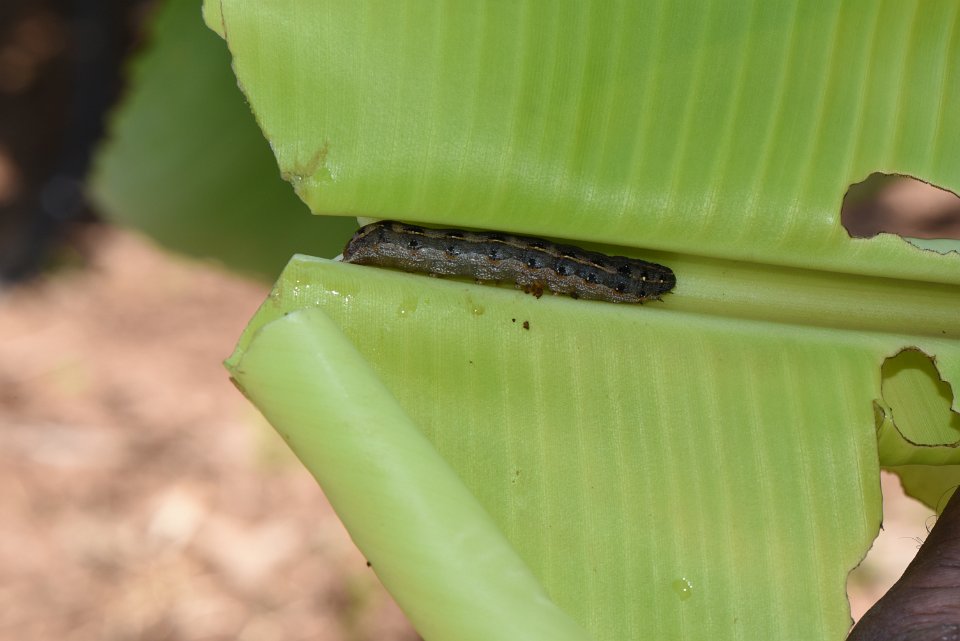 Spodoptera litura, the leaf caterpillar, has several host plants and is a major pest of bananas in all banana growing areas.