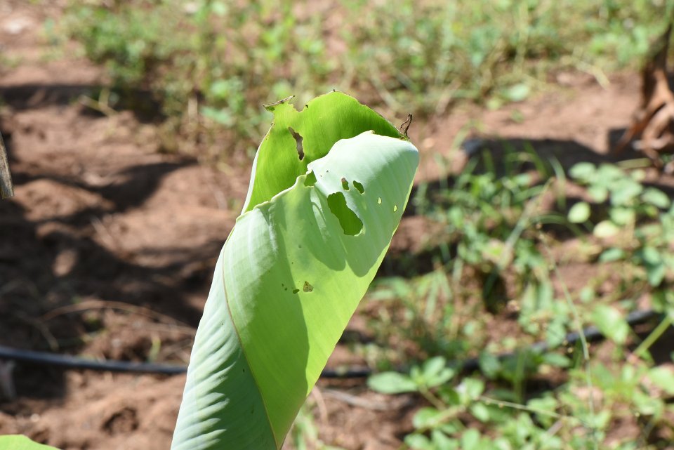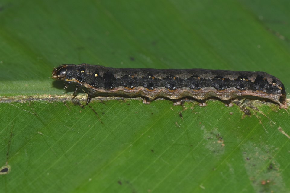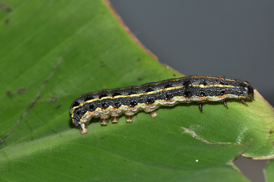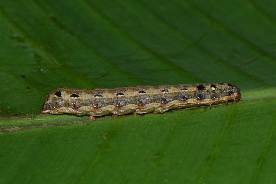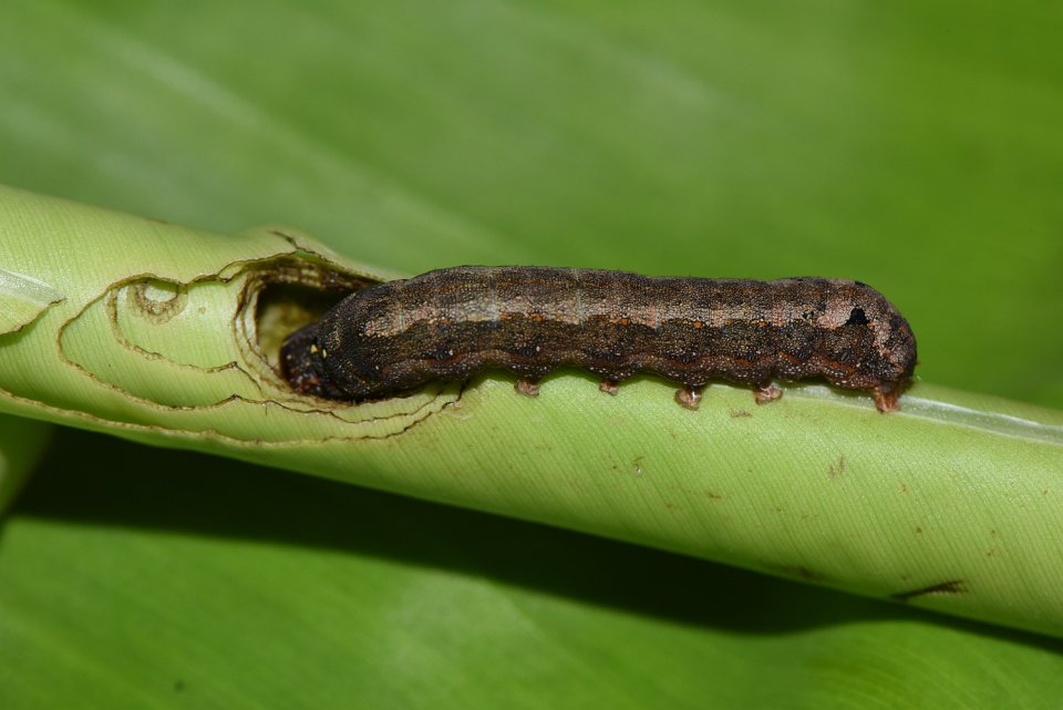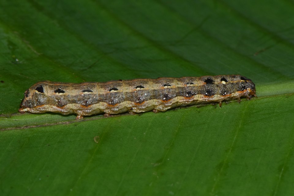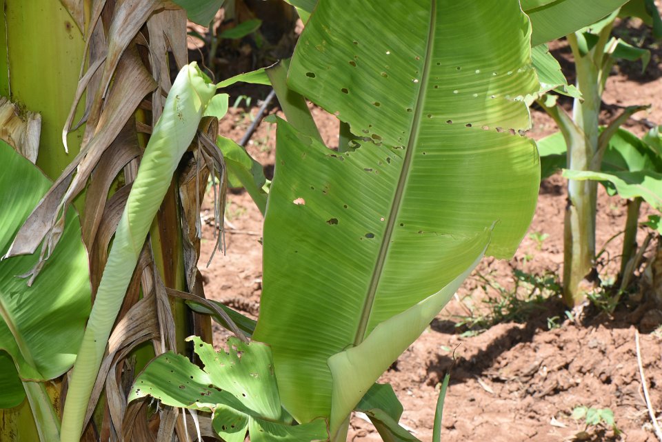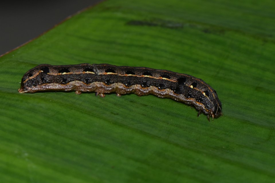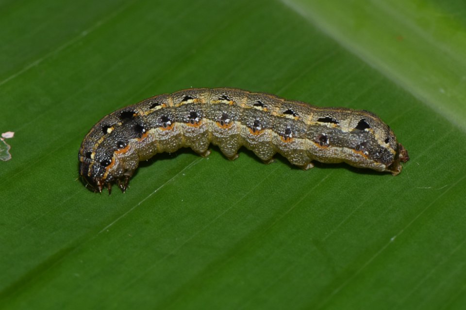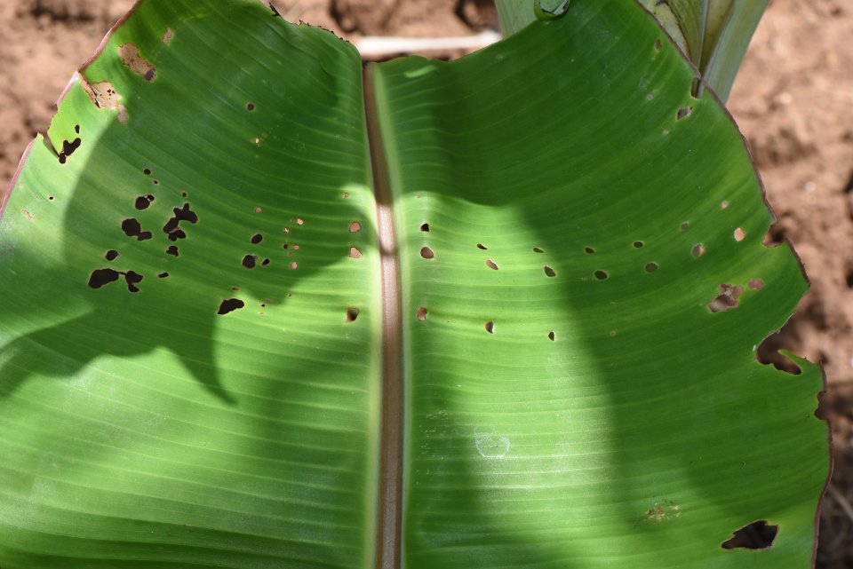Spodoptera litura, the leaf caterpillar, has several host plants and is a major pest of bananas in all banana growing areas.