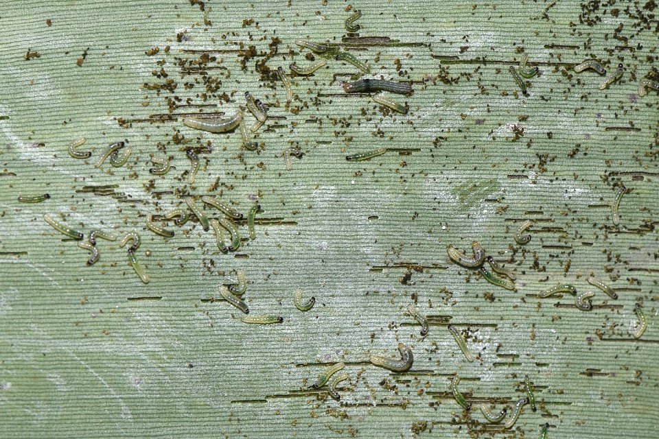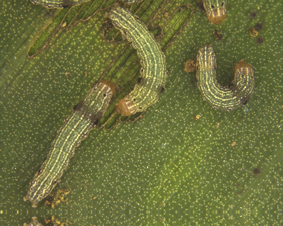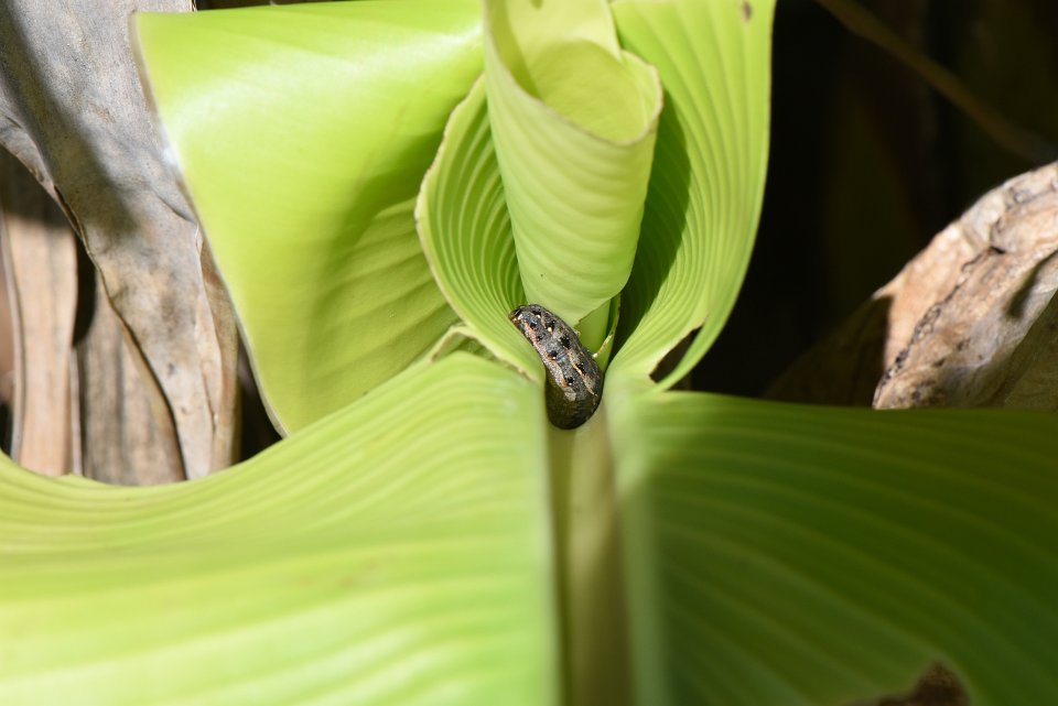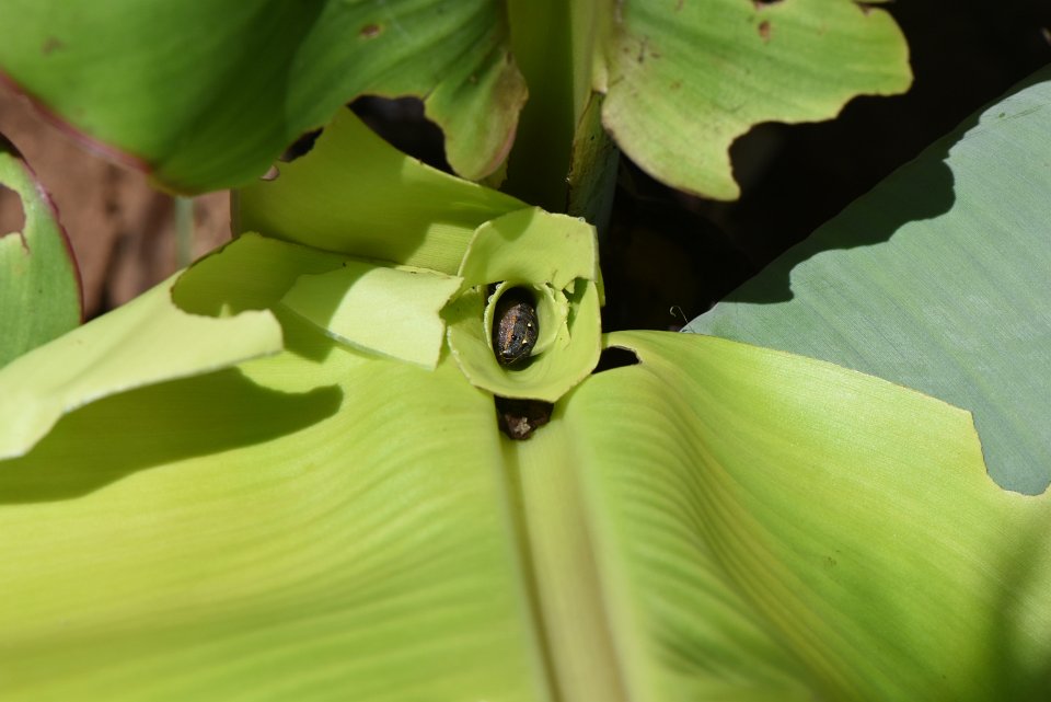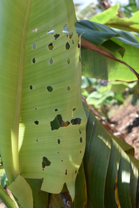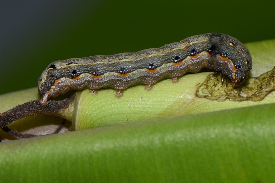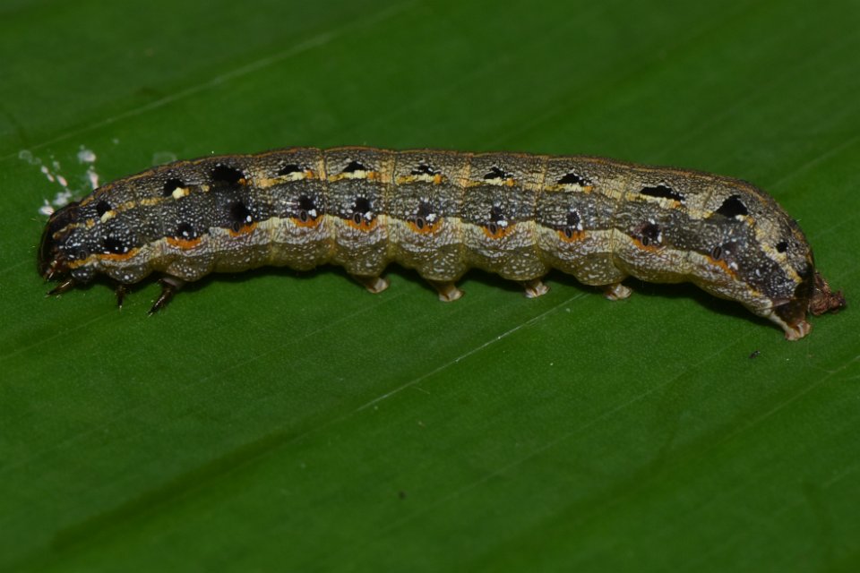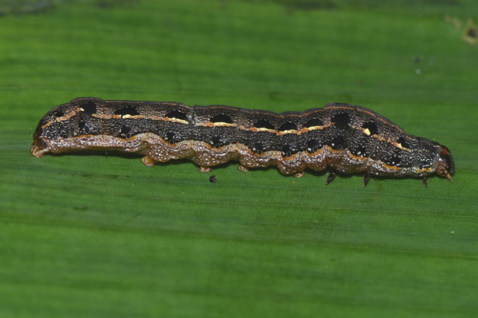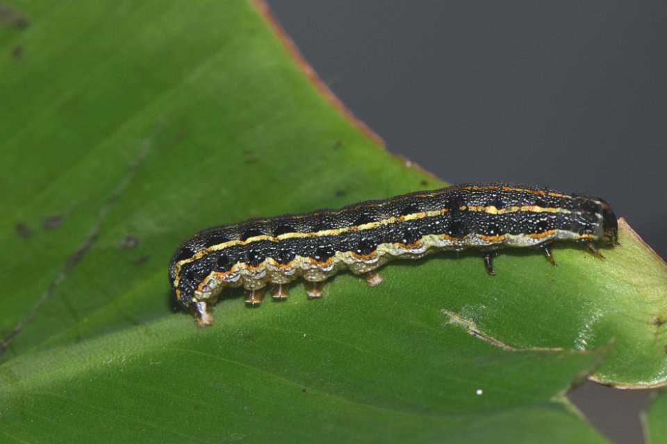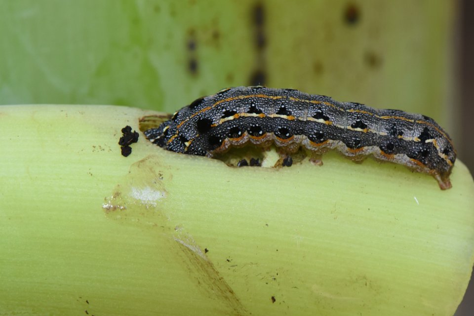 Spodoptera litura, the leaf caterpillar, has several host plants and is a major pest of bananas in all banana growing areas.