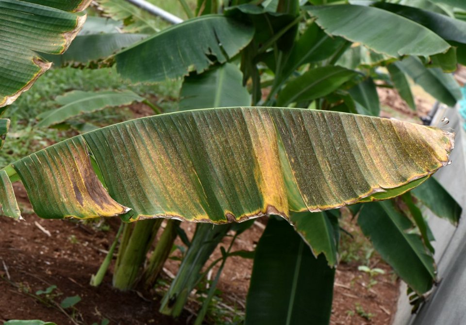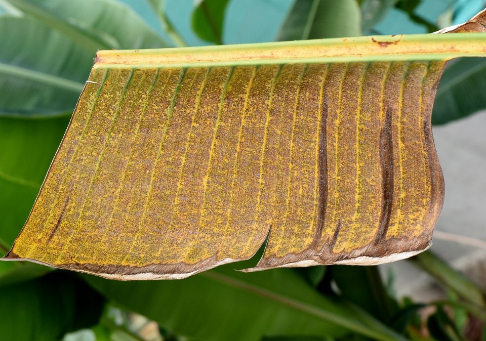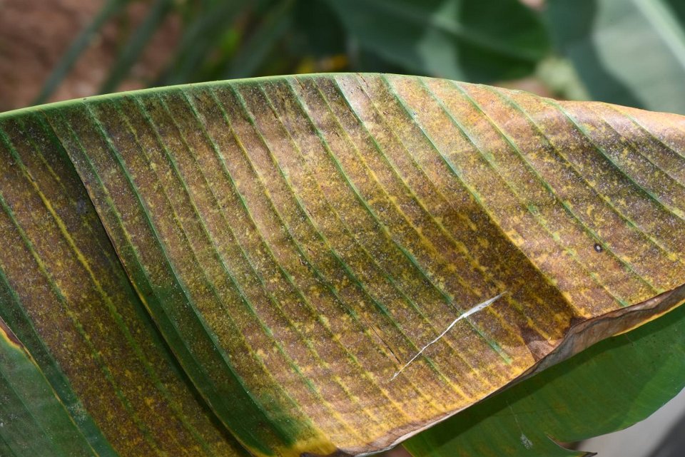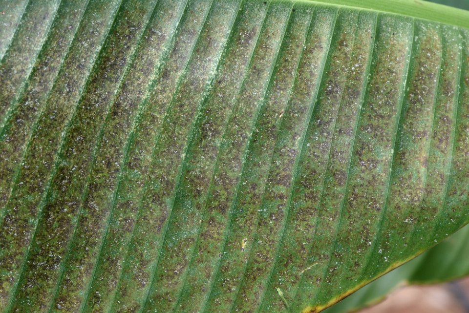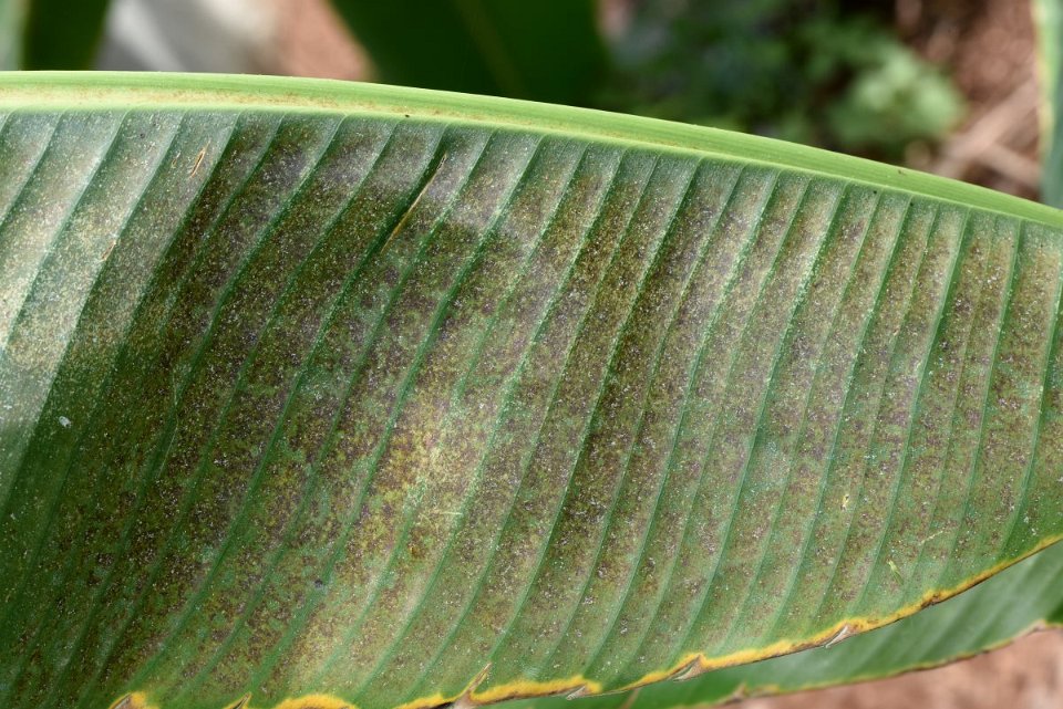 Unlike other mite pests of banana, Oriental red mite infests the upper surface of leaves