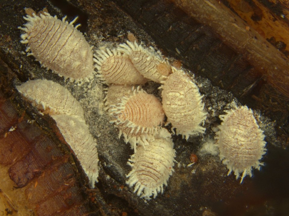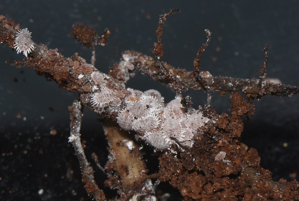 Dysmicoccus brevipes is a common pest of banana and is usually found on natural cavities and roots.