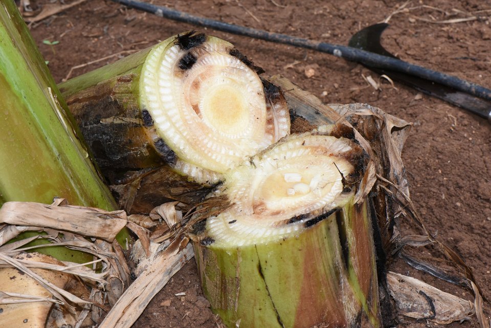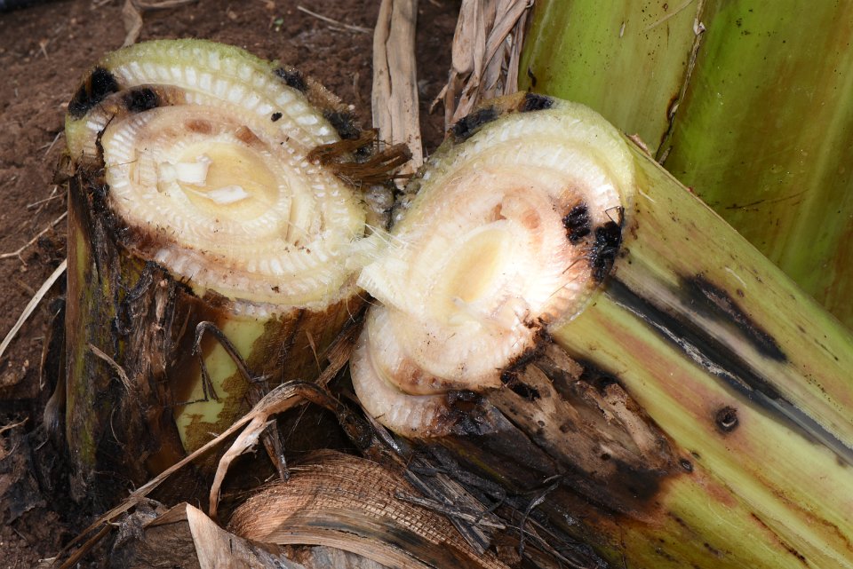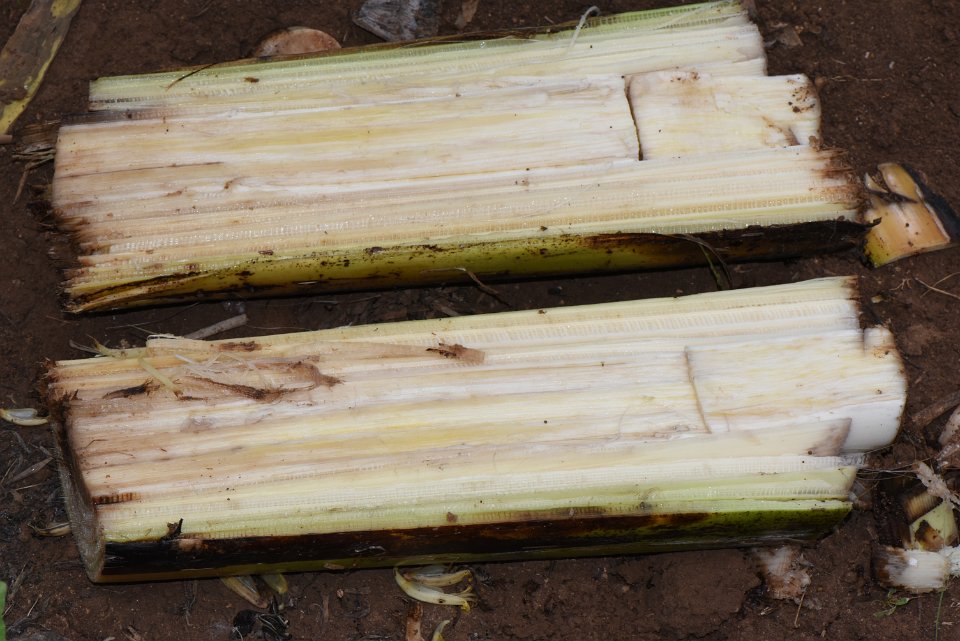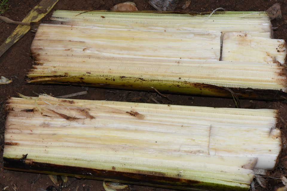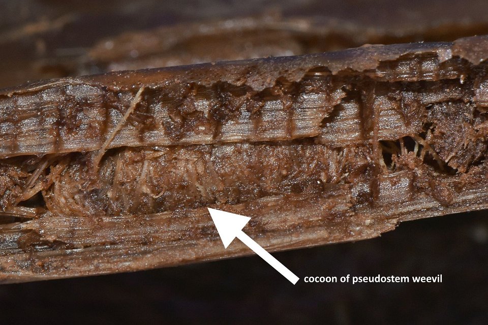 Longitudinally split pseudostem pieces can be used as traps for monitoring and trapping of banana pseudostem weevil.