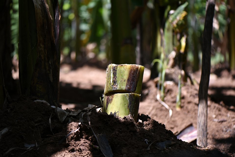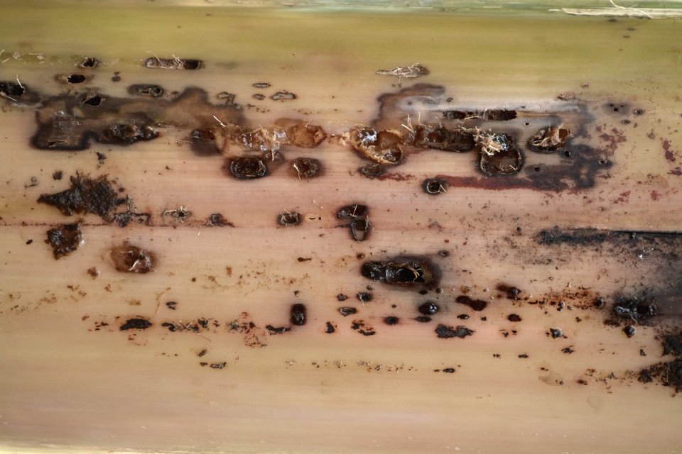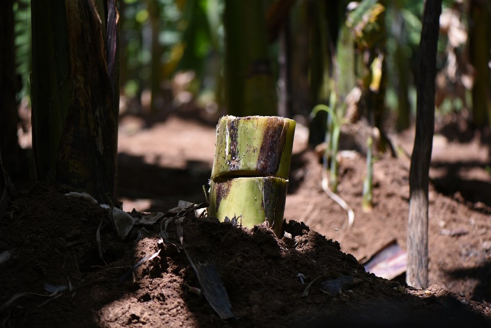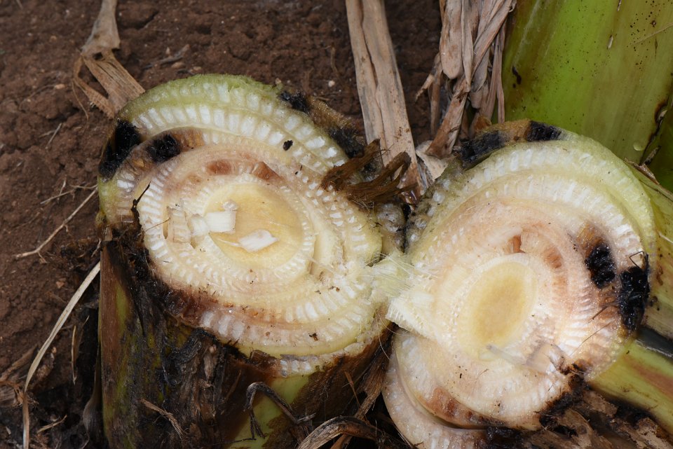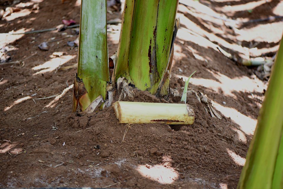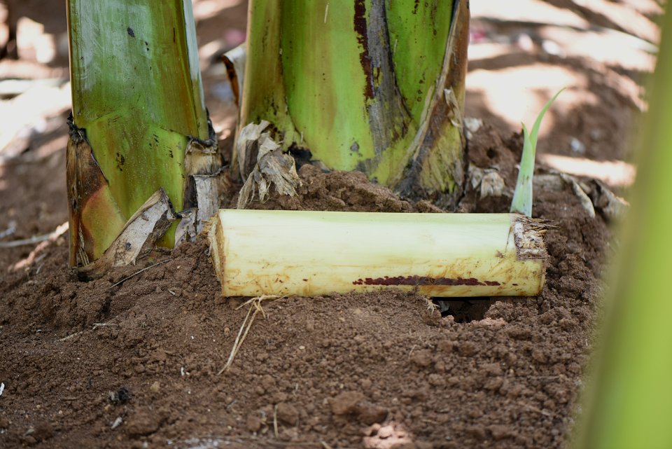 Longitudinally split pseudostem pieces can be used as traps for monitoring and trapping of banana pseudostem weevil.