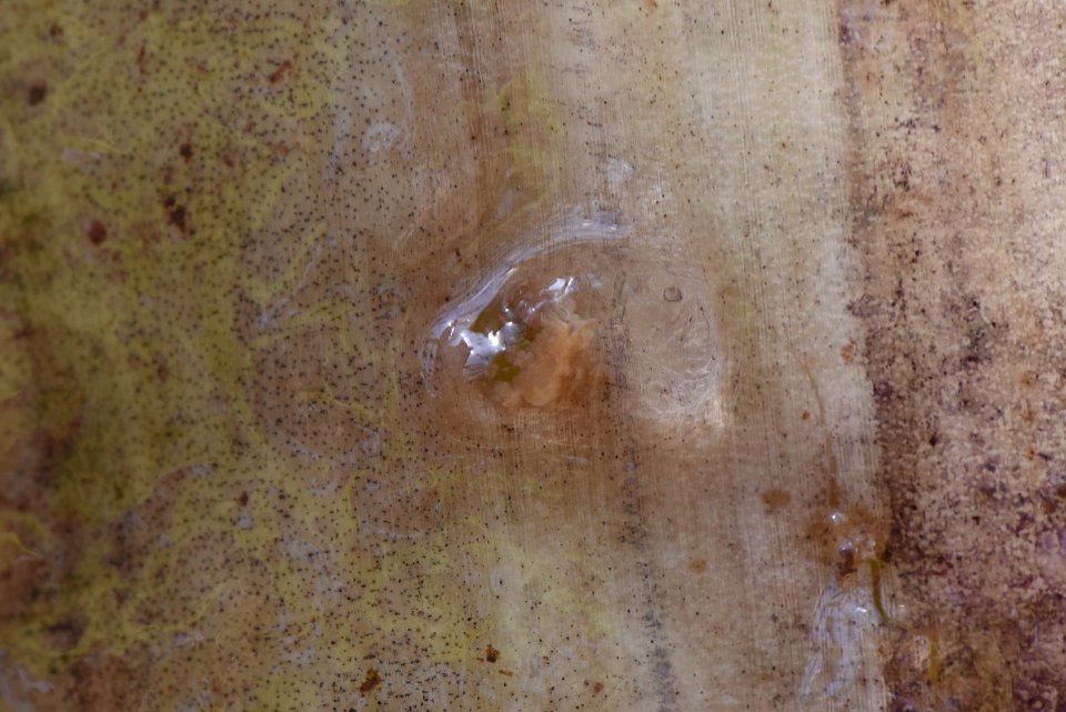 Banana stem is longitudinally cut into pieces which are used for trapping / monitoring.