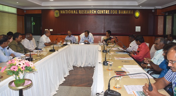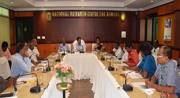 Shri. M. Girija Shankar, IAS, Secretary to Hon’ble Chief Minister, AP & Secretary, Food Processing and his team visited ICAR- NRC Banana to explore opportunities in the banana supply chain including export and value addition in continuation to the MoU signed with the institute by the AP Govt in the presence of Dr. Chandrababu Naidu. He said, with the budgetary allocation of over 300 crores and the separate ministry, food processing in Andhra Pradesh becomes the sunrise sector and took a lead in developing more than 300 small scale enterprises during the past four years and became a model for other states to emulate. While showcasing the NRCB technologies, Dr. S. Uma, Director of the Institute emphasized the success of shipments to Italy and West Asia through sea route for banana. Director assured that NRCB shall extend helps in developing “Banana Board” to improve the fruit industry in Andhra Pradesh. Possible technological backstopping for the value chain development in Banana, creation of Farmer producers Companies, using of banana wastes like fibre, central stem, peel and flower, preparation of sustainable project for MSME are given major thrust in the meeting which was attended by the scientists and the stakeholders comprising FPOs, exporters and entrepreneurs. Dr. B. Padmanabhan welcomed the guests and Dr. P. Suresh Kumar has given the vote of thanks.