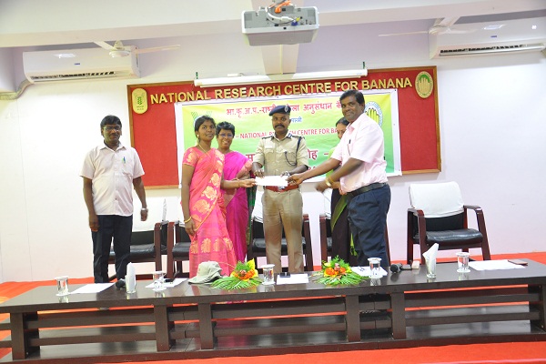 The ICAR-National Research Centre for Banana, Tiruchirapalli celebrated Hindi Day and Swachcha Diwas on 27.9.2019. Dr.(Mrs.) Uma, Director of the Centre presided over the function. Mr. V.Balakrishnan, IPS, DIG of Police, Tiruchirapalli participated in the function as Chief Guest and Dr. Chandish R. Ballal, Director, ICAR-National Bureau of Agricultural Insect Resource, Bengaluru as Guest of Honour. Importance and necessity of adopting Hindi as Official language in the Central Government Offices were stressed during the function. As a part of Swachchatha Diwas, “avoiding single use of plastic” materials in our day-to-day life was stressed and sufficient awareness has been made among the nearby school children and adopted village people, who have been invited for this function. Competitions were conducted for the children of the local schools with regard to stringent management of plastics for pollution free environment. The Chief Guest and the Guest of Honour gave away the prizes to the winners of various competitions held in connection with Hindi day and Swachchatha Diwas Celebrations. The function ended with a cultural programme related to Swachcha Bharat Abhyaan. Dr. K.N.Shiva Principal Scientist of this Centre welcomed the gathering and Dr.K.J.Jeyabaskaran, Principal Scientist gave vote of thanks.