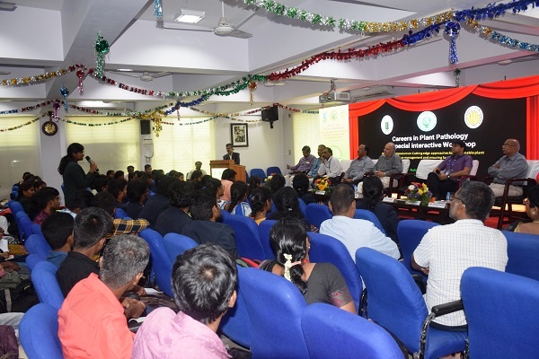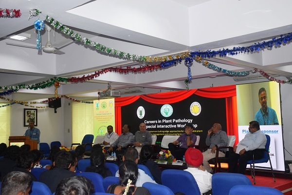 The role of information and communication technologies and internet of things among stake holders like pathologists, farmers, seed and pesticides manufacturers was emphasized for early identification of diseases and their efficient management. The conference called for close association of KVK's in technology assessment and dissemination related to disease management and held an open session of doubling the farmers income. Around 288 agricultural scientists of Plant Pathology and Breeders, academicians, progressive farmers, representatives from industries related to plant protection and scholars from state agricultural universities and colleges of southern states viz., Tamil Nadu, Pondicherry, Kerala and Karnataka, have participated in the symposium. The symposium had 9 key note lectures, 19 lead talks and 63 oral presentations and 137 poster presentations. There were four concurrent sessions held on 11 different themes. On the third day, Professor M.J.Narashimhan award contest was held and seven presentations were made in front of a five member jury. Two were shortlisted as nominees for the IPS annual meet. One nominee was shortlisted for APS travel grant contest. In addition, a special interactive workshop on Careers in plant pathology was organized for the benefit of the undergraduate students who aspire to become Plant Pathologists. A panel consisting of academicians, scientists, private fungicides company representatives, entrepreneurs depending on Mushrooms, AGM of reputed Bank and personnel from tissue culture industry have interacted with students for 4 hours long interaction and then they were trained to use dipstick kit to detect banana virus and were also taken into the Virology and Pathology labs. Around 179 students participated in the one-day special interactive workshop conducted on 22nd December 2018.