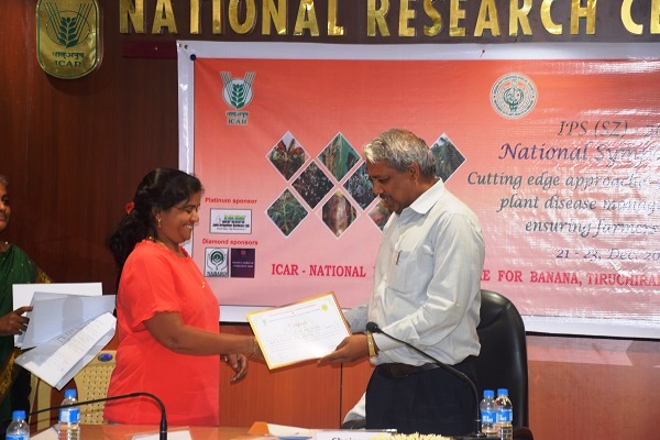 Indian Phytopathological Society (Southern Zone Chapter) and the ICAR-National Research Centre for Banana have organized jointly a three days National Symposium on ‘Cutting edge approaches for sustainable plant disease management and ensuring farmers’ profit’ during 21-23 December 2018 at ICAR NRC Banana, Tiruchirapalli. The Indian Phytopathological Society is the third largest society of plant pathologists in the world and is a professional forum for promoting the science of plant diseases. The symposium offered a platform for the exchange of knowledge, expertise, innovative ideas, development and views among scientists and academia related to plant diseases. The symposium had different themes viz., emerging and re-emerging plant diseases, diagnostics, pathogen detection, management of diseases using biocontrol agents along with advanced fields like nanotechnology, mushroom cultivation and integrated disease management for crops.