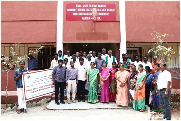 ICAR – National Research Centre for Banana, Tiruchirappalli, Tamil Nadu and Community Science College and Research Institute, Madurai jointly organizeda farmers’meet at Madurai on 23rd March 2022. Three events viz., KelaMela, exhibitioncum training programme were coordinated to cover the different block-level selected SC banana farmers and different stakeholders. Dr. S. Amutha, Dean (Community Science, CSC&RI, Madurai) delivered her special address and discussed the importance of district-level exhibition and training programme to reach the unreached. Dr J. Pushpa, Professor and Head and local coordinator of the programme welcome the gathering. Dr. C. Karpagam, Principal Scientist (Agricultural Extension) & Training coordinator of ICAR NRCB explained the role of ICAR NRCB in banana Research and Development and how the farmers can utilize the services provided by the NRCB for the betterment of banana cultivation. Dr. M. Loganathan, Principal Scientist discussed banana diseases and their management techniques. Dr. K. N. Shiva, Principal Scientist discussed the advanced research in post-harvest technologies. Drs. S. Kanchana, Professor & Head, P.S. Geetha, Associate professor and A. Kalaiselvan, the Assistant professor from CSC &RI, Madurai discussed the different dimensions of value-added products in banana cultivation. During the meeting, a booklet on “Banana” which cover the details from banana new varieties tovalue-added product aspects was released. Farmers have visited the value-added products exhibition. Appreciation certificates were presented to all the participants. The meeting ended with a vote of thanks by Dr A. Kalaiselvan. Around 40SC beneficiaries from different blocks of the Madurai district were participated and got benefited from the programme.