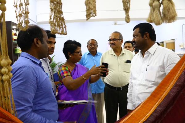 21st July 2022, Shri Shankar Patil B Munenakoppa, Hon’ble Minister for Handloom and Textiles and Sugar Development Board, Karnataka State, Karnataka State visited ICAR- NRCB for technical collaboration for fibre based technologies to utilize in textile and handloom industries for uplifting banana farming in Karnataka State.During the event, Dr. S. Uma, Director ICAR-NRCB emphasized,In India, banana as an enterprise is generating around Rs 70000 crores and providing livelihood to millions of farmers. States like Karnataka having 1.4 lakh hectares under banana cultivation generates huge volume of waste, utilization of which could generate additional income of more than 1000 crores.The potential use of banana fibre in automobiles, composites, paper& pulp industries was also highlighted. Comprehensive use of fibre, scuture, central core stem and sap water was stressed for sustainability and profitability. Shri Shankar Patil B Munenakoppa, Hon’ble Minister for Handloom and Textiles said given the increasing demand for eco-friendly materials, banana fibre can be a good option for making garments, carpets, cushions, baskets and other products. He felt employing rural women in handicraft industry make them to earn more and MSME companies could also be get established under Atma Nirbhar programme. Shri Bhojaraj C N, Secretary, LaghuUdyogBharathi, Karnataka State said banana processing has excellent potential to be established, as it can provides entrepreneurial oppurnities and will attract rural youth of Karnataka. He felt the organization could support SHGs, FPO of which many from Tamil Nadu to harness the potential of using banana based value added products. An exhibition was arranged to showcase the wealth of value added products and use of banana fibre. The event was coordinated by Dr. P. Suresh Kumar and Dr. K.N. Shiva, Principal Scientists. Scientist of the institute & NIFTEM, Thanjavur, technical officers, administrative and supporting staff, Students and Research Scholars were also present during the visit.