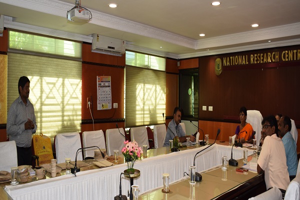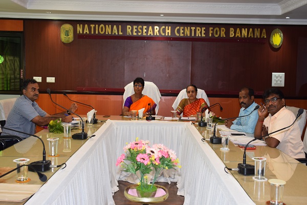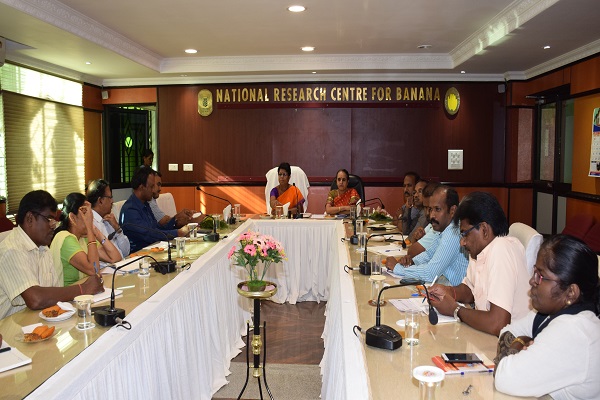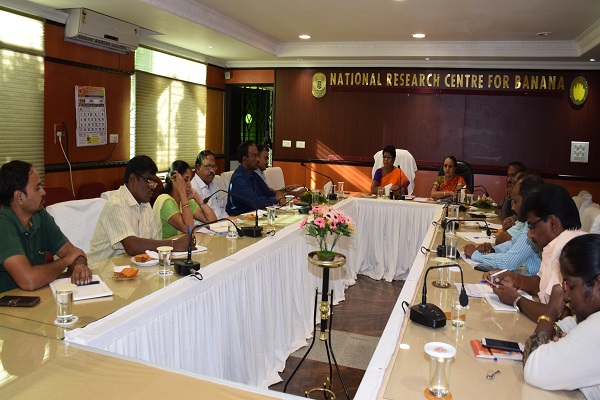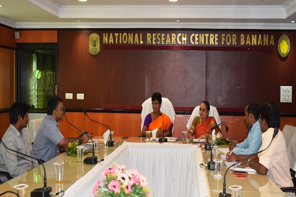 Mrs. Padma Raghunathan, Central General manager, NABARD, Chennai visited the Institute on 20th June 2019. The meeting was held with the purpose of identifying the areas where ICAR- NRCB and NABARD can make a handholding in the coming years. Mrs. Padma Raghunathan briefed about the various farmers-oriented programmes that could be tapped by the institute starting from infrastructure development to capacity building to the farmers. She also asked the institute to get fund from NABARD to bring out farmers friendly technology dissemination booklets in vernacular languages to cover the vast population. Funds for large scale demonstration of technologies was also discussed. Dr. S. Uma, Director, ICAR- NRCB, briefed the long association of institute with NABARD on various activities. She asked the CGM to consider for the Mega proposal from institute covering various aspects of technology dissemination and providing fund for strengthening the existing infrastructure facilities. All the scientists of the Institute and Mr. V. Rajaraman, District Development Manager, NABARD, Trichy also presented in the meeting. Later she and her team visited the lab and farm facilities of the Institute.