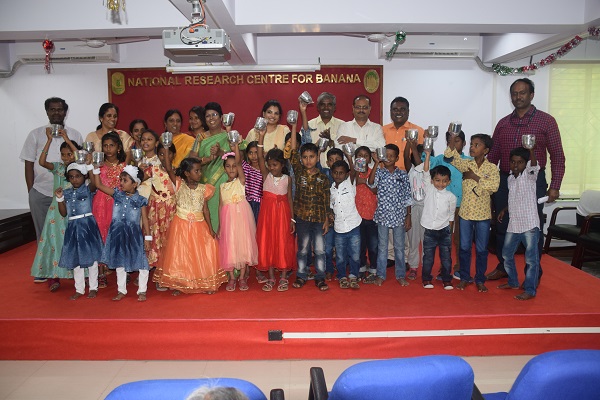ICAR-NRCB Recreation club has greeted New Year, 2019 on 01.01.2019 at the institute premises. About 200 members of ICAR-NRCB staff, JRF, SRF and students and skilled and unskilled workers participated in the New Year 2019 celebration. On this occasion, various kinds of competition was conducted, like, drawing, lemon & spoon and bucketing the ball etc. for the staff and their kids. Besides, they were all taught the Swachh Bhartah mission, & slogan. In the afternoon of 1st January 2019, all NRCB workers had a formal gathering and Dr. B. Padmanabhan, Principal Scientist welcomed the staff and their family members for the new year-2019 celebration. Various cultural events like dance, singing, elocution, etc. were performed by the staff and their kids. On this occasion, Dr. S Uma, Director, ICAR-NRCB highlighted the previous year’s achievements of ICAR-NRCB and emulated all the staff to strive hard to take the NRCB to a newer height. Then, prizes were distributed to all the winners of the various events. At the end, the cake cutting ceremony was done by the Director with all the staff.
