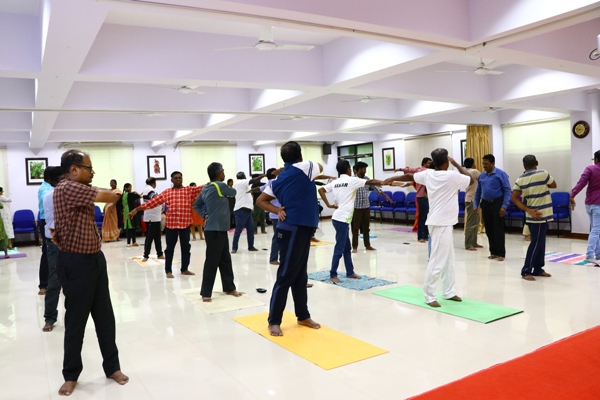 Dr.Sugumar, along with his team of yoga trainers, briefed about the benefits of almost 26 ashanas and made a live demo which was followed by the staff of the institute with great contentment