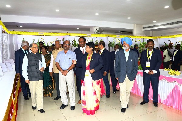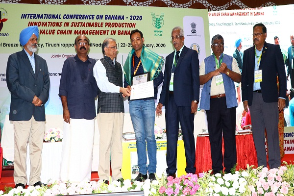 Many dignitaries including Dr. N. Kumar, Vice Chancellor of TNAU, Coimbatore, Dr N. K. Krishnakumar, Regional Representative of Bioversity International for South and Central Asia; Dr W. S.Dhillon, ADG (Hort.) and Ms Sumathi Ramachandran, Post Master General, Trichy, participated in the inaugural function and addressed the gathering. Lifetime achievement awards were conferred on Dr. N. Kumar, Vice Chancellor, Tamil Nadu Agricultural University, Coimbatore and Dr H. P. Singh, Former DDG (Hort.) and Founder-Director, NRC for Banana for their pioneering contributions to banana R&D. A lifetime achievement award was posthumously conferred on Late Mr Bhavarlal Jain, founder chairman of M/s Jain Irrigation Systems Ltd. for his services to Indian agriculture. Progressive banana farmers and entrepreneurs in banana related enterprises were also honoured with awards.