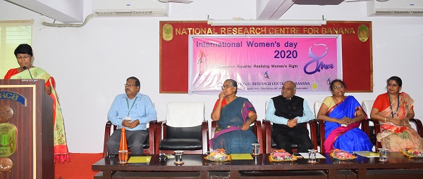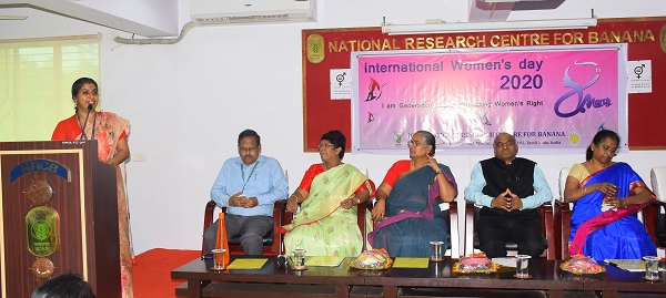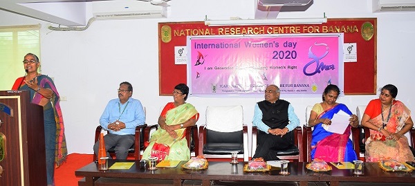 In her Women’s Day message Dr. S. Uma, Director, NRCB addressed the gathering with International Women’s Day 2020 theme “Each for Equality”. She emphasized women should be empowered, bold enough to face the problems and should have equal opportunities in all spheres of life. She also appreciated outperformance of girl students in all disciplines especially in the field of agriculture which was very negligible three decades back.