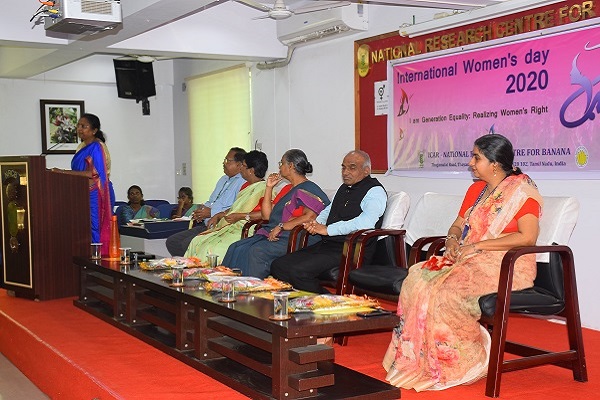 The International Women’s Day was celebrated with full enthusiasm at the National Research Centre for Banana, Tiruchirappalli. Both women and men staff from categories including farm staff and students from the Horticulture College & Research Institute for Women, Navalur Kuttappattu have took part in various activities of the program.
