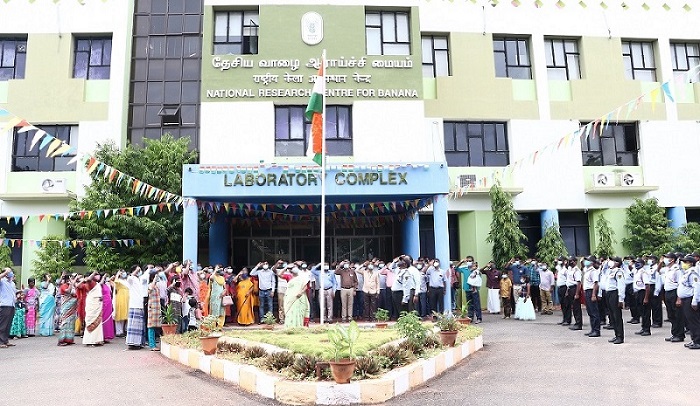 India's 75th independence day was celebrated on 15.8.21 at ICAR-NRCB, Trichy with enthusiasm and nationalistic fervour. Dr. S. Uma, Director, ICAR-NRCB, Tiruchirappalli, hoisted the national flag and delivered the Independence Day address, highlighting the solemnity of the occasion and the sacrifices made by our freedom fighters and forefathers for the same. Further, she highlighted the contributions made by the ICAR and NRCB in the agricultural sector. She called upon the staff to contribute to the initiatives of the ICAR under the AZADI KA AMRUT MAHOTSAV such as organising 75 National and Sector-specific campaigns, 75 lectures and 75,000 success stories of farmers across the country. The programme was attended by around 150 participants including all the staff and farmers from the nearby villages.
