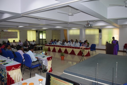 Two days Quinquennial Review Team Meeting of ICAR- AICRP Fruits was held on 19 & 20th December, 2017 at ICAR- NRC Banana, Trichy. The meeting began with the welcome address by Dr. P. Suresh Kumar who welcomed Padmashri Dr. K.L. Chadha, Chairman, QRT,other members (Dr. H.K. Senapathi, Dr. Satyabrata Maiti, Dr. V.S. Thakur and Dr. B.M.C. Reddy) and delegates of various states. Dr. Prakash Patil, Project Coordinator AICRP- Fruits, in his report outlined the impact of AICRP developed technologies on banana cultivation and spread in new areas. He made the SWOT analysis and raised concern on frequent transfer of AICRP personnel by the universities. Dr. S. Uma, Director, ICAR-NRCB & Crop coordinator emphasized the necessity to characterize the varietal wealth and need to develop new centres in north east and other needy places. She requested the officer in-charge of various centres to document the developed technologies and need to share the best clones for testing across region for recommendation as new variety. Dr. K.L. Chadha appreciated the AICRP-Fruits for development of multi-region adopted germplasm lines like NRCB-08 and NRCB-10. He was critical about the data generation and stressed the fact that more research papers must come out as combined results of various centres as this is a unique system and the potential should be tapped effectively. Thematic and centre wise presentations were made and critical comments were given by the chairman and members of the QRT for the improvement of AICRP- Fruits activities and laying the road map for the future action plan. It is advised to take up large scale multiplication of disease free quality planting material in a public- private partnership mode.The popularization of clonal selections and macro propagation through KVKs in the form of demonstration trials was also suggested.