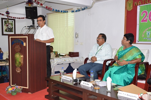 Guest of honour, Shri T.V. Manjunatha, Additional Principal Chief Conservator of Forests, Chennai has pointed out the ways and means to increase the banana farmers income. He emphasized the need for conserving the soil health and improving the water use efficiency and urged the farmers society to conserve water by planting more trees. He also stressed on the market study to get better price, creation of cold chains at taluk level, value addition, growing multiple varieties of banana to avoid slash etc., soil health test to ensure balanced application of nutrients, water budgeting and finally the need for living in tune with nature.