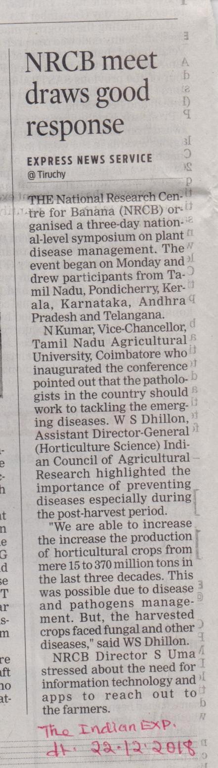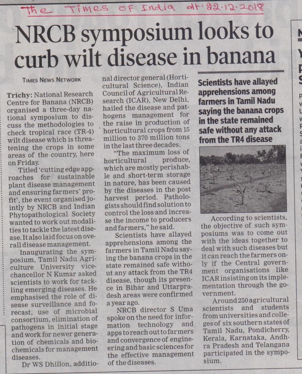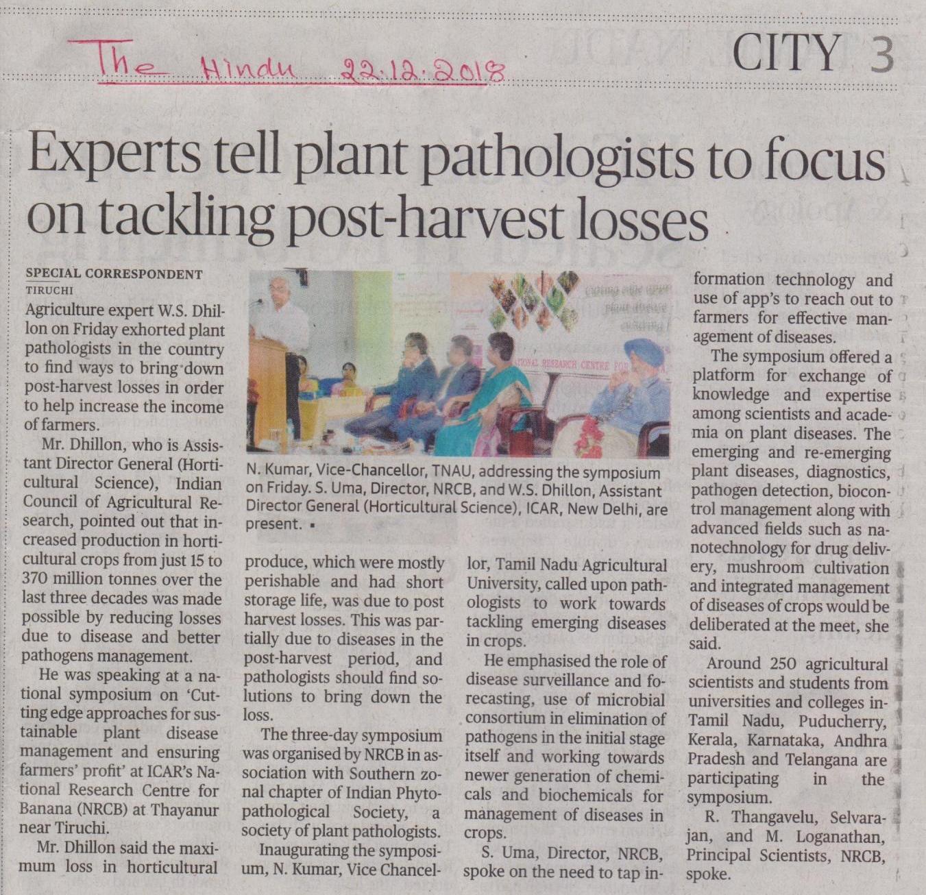 NEWS - National Symposium on Cutting edge approaches for sustainable plant disease management and ensuring farmer’s profit held during 21-21, Dec., 2018